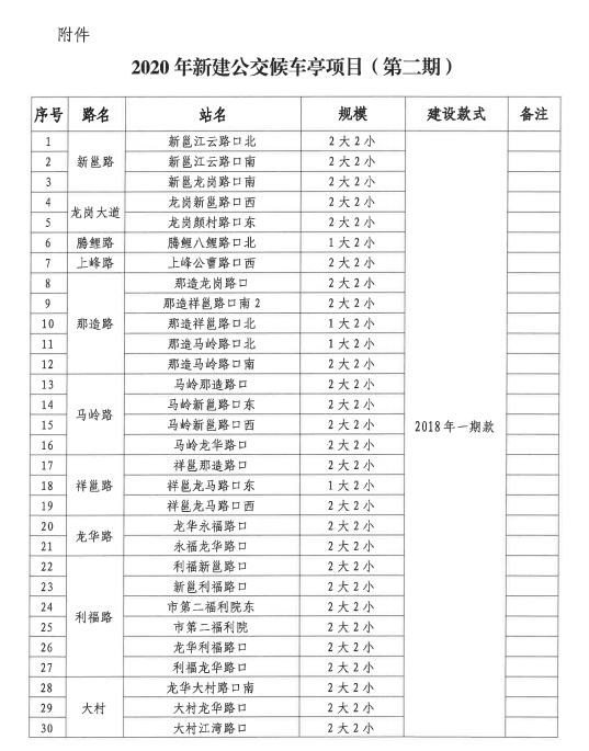 2020年新建公交候車亭項目(第二期)意向投標(biāo)人征集公告(邀請招標(biāo))
