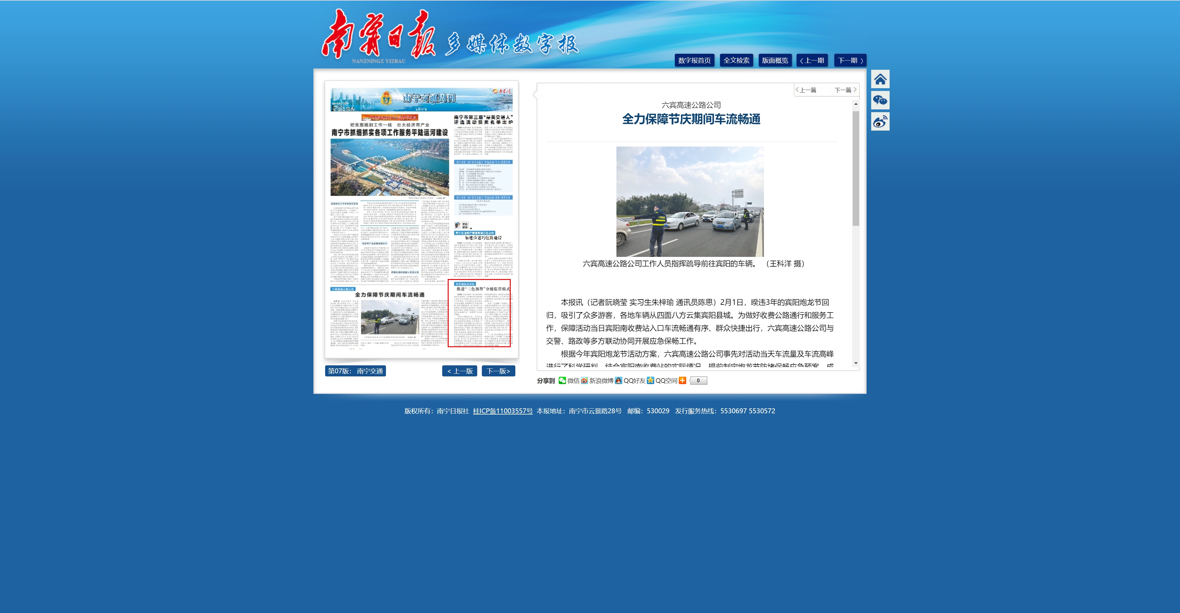 六賓高速公路公司 全力保障節(jié)慶期間車流暢通